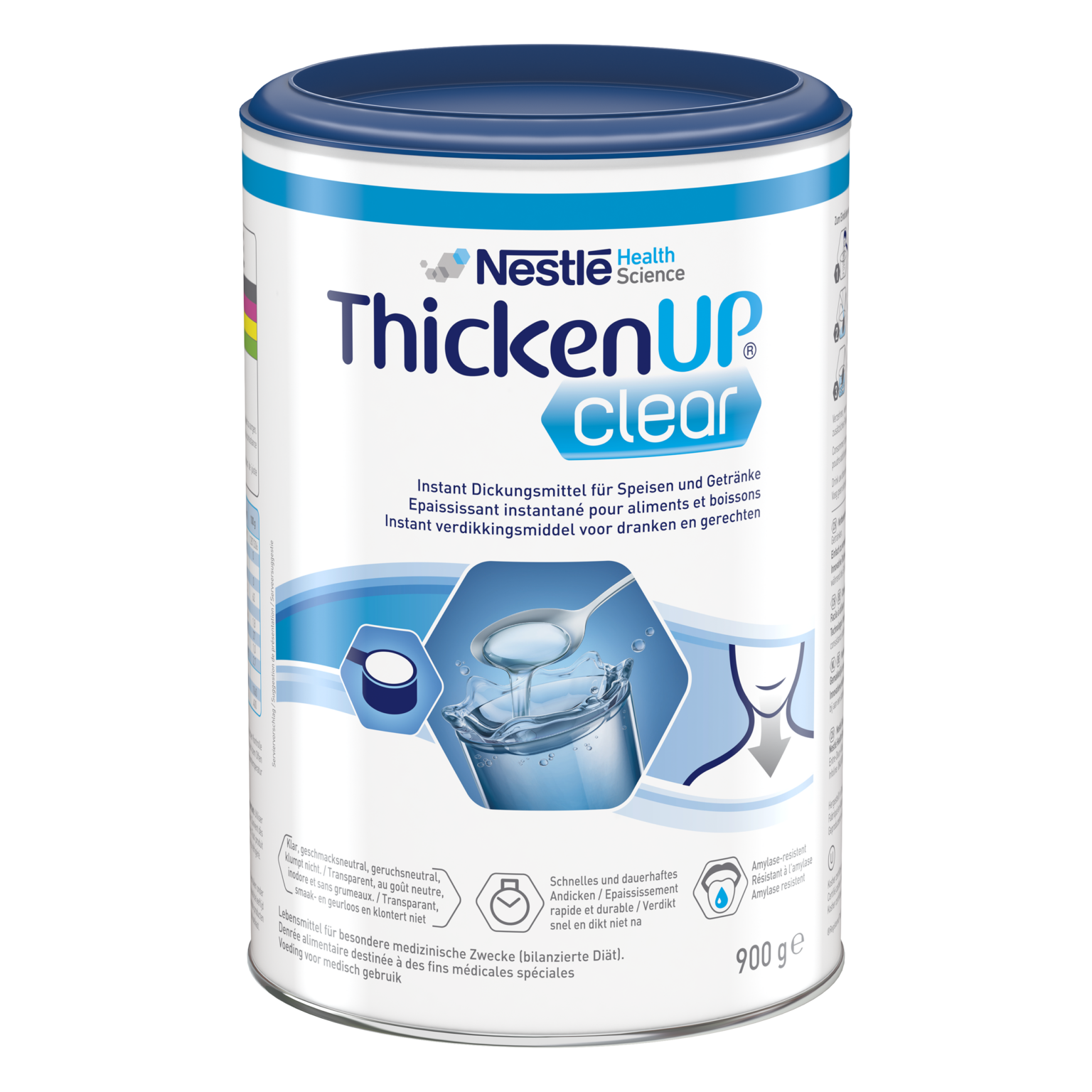 ThickenUP® Clear ist ein innovatives geschmacksneutrales Instant-Pulver mit Xanthan-Gummi zur Eindickung von Flüssigkeiten und pürierten Speisen bei Schluckstörungen (Dysphagie).